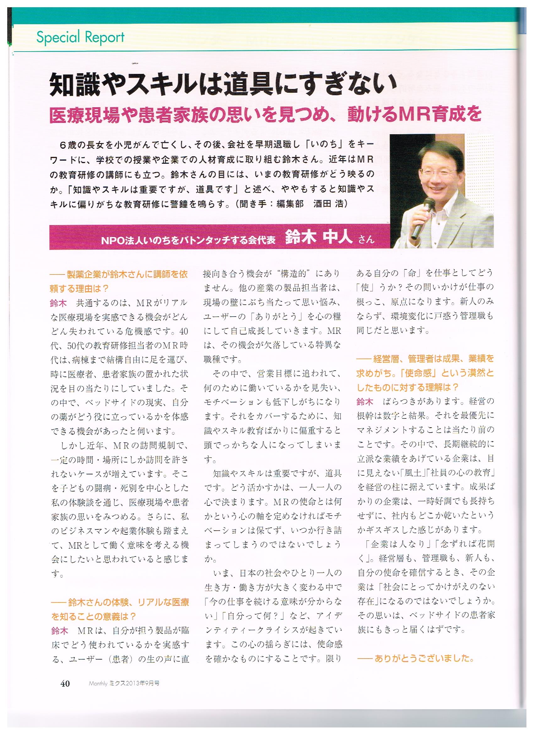 ◆「いのちと医療(看護、介護、社会福祉)」「MRの使命」