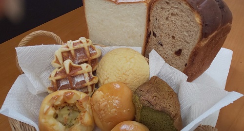 こだわりの材料は、できるだけ添加物を除き、マーガリンではなく良質なバター、砂糖は種子島産きび砂糖、たまごは小原の「たまご村」から、塩はミネラル豊富なフランス産の「ゲランド」、米粉パンには小原の「ミネアサヒ」を使用しています。